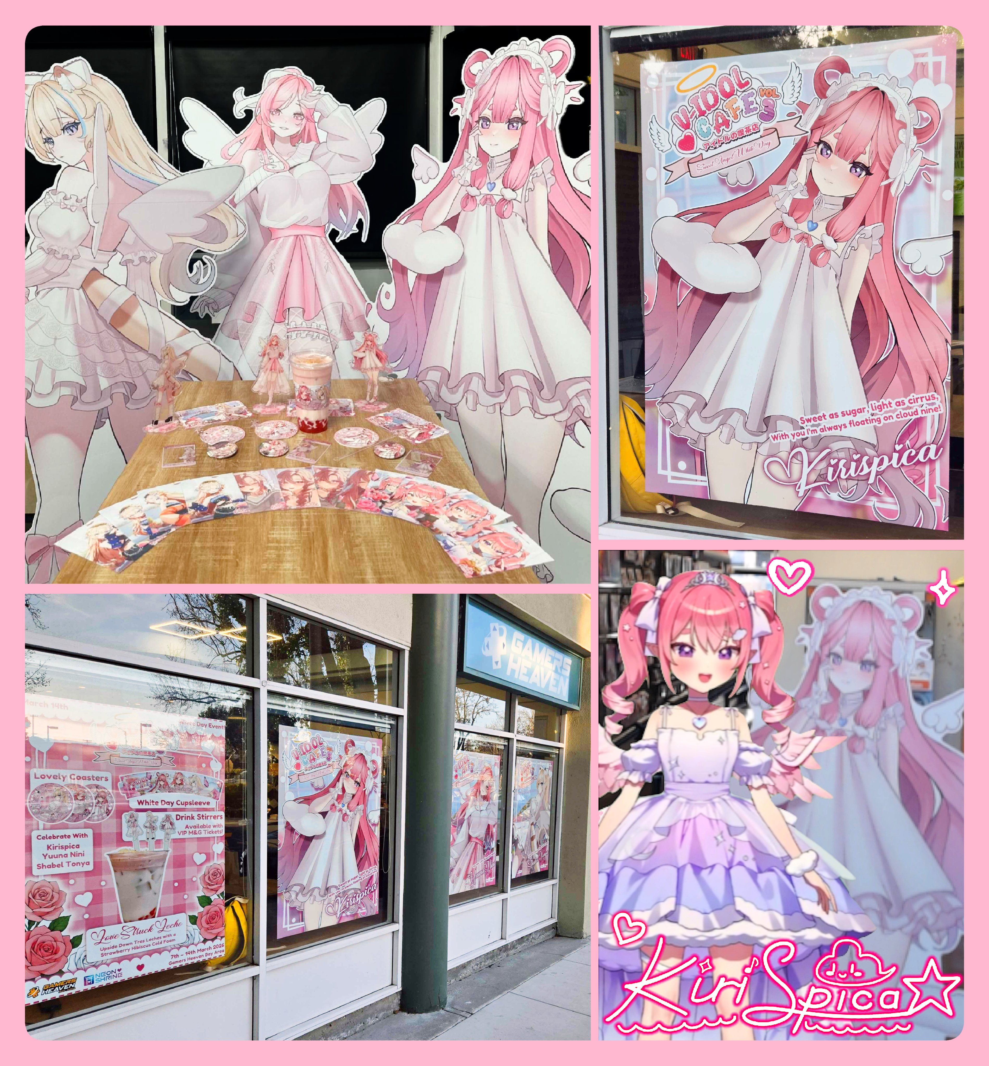 Spica was one of the three angels participating in a collab café with Neon Shrine and Gamers Heaven in the bay area. Other participating talents were the indie vtuber Yuuna Nini, and Chroma-Shifts Shabel Tonya.